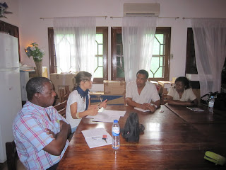 Foram realizadas também reuniões com os Delegados de Saúde de todos os distritos de S. Tomé onde foi apresentada a proposta de intervenção e acompanhamento da criança desnutrida, os referidos protocolos de seguimento e de referenciação aos cuidados nos Centros de Saúde.