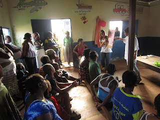 Como já tive oportunidade de referir, foi estabelecida uma parceria com a HELPO em Outubro do corrente ano , que prevê intervenções a nível das comunidades sobre problemas frequentes, incidindo particularmente na prevenção primária. Propôs-se portanto que fossem realizadas sessões sobre Nutrição nos primeiros anos de vida, completando assim o trabalho realizado a nível dos cuidados de saúde do país.