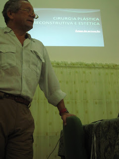 O Dr. Carlos deu uma palestra no Hospital Ayres Menezes sobre as áreas de actuação da Cirurgia Plástica, essencialmente na área reconstrutiva, que inclui abordagem de queimaduras e suas sequelas, esfacelos de tecidos, cirurgia da mão e membros (electivas e sequelas de traumatismos em fase aguda), úlceras de decúbito, cirurgia oncológica particularmente da cabeça e pescoço, a reconstrução mamária e correcção de malformações congénitas.